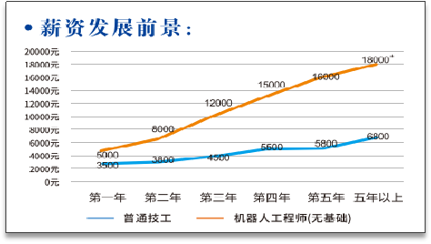工业机器人领域80%的就业者初期薪资超过5000元,薪资三年后可达15000元/月以上。