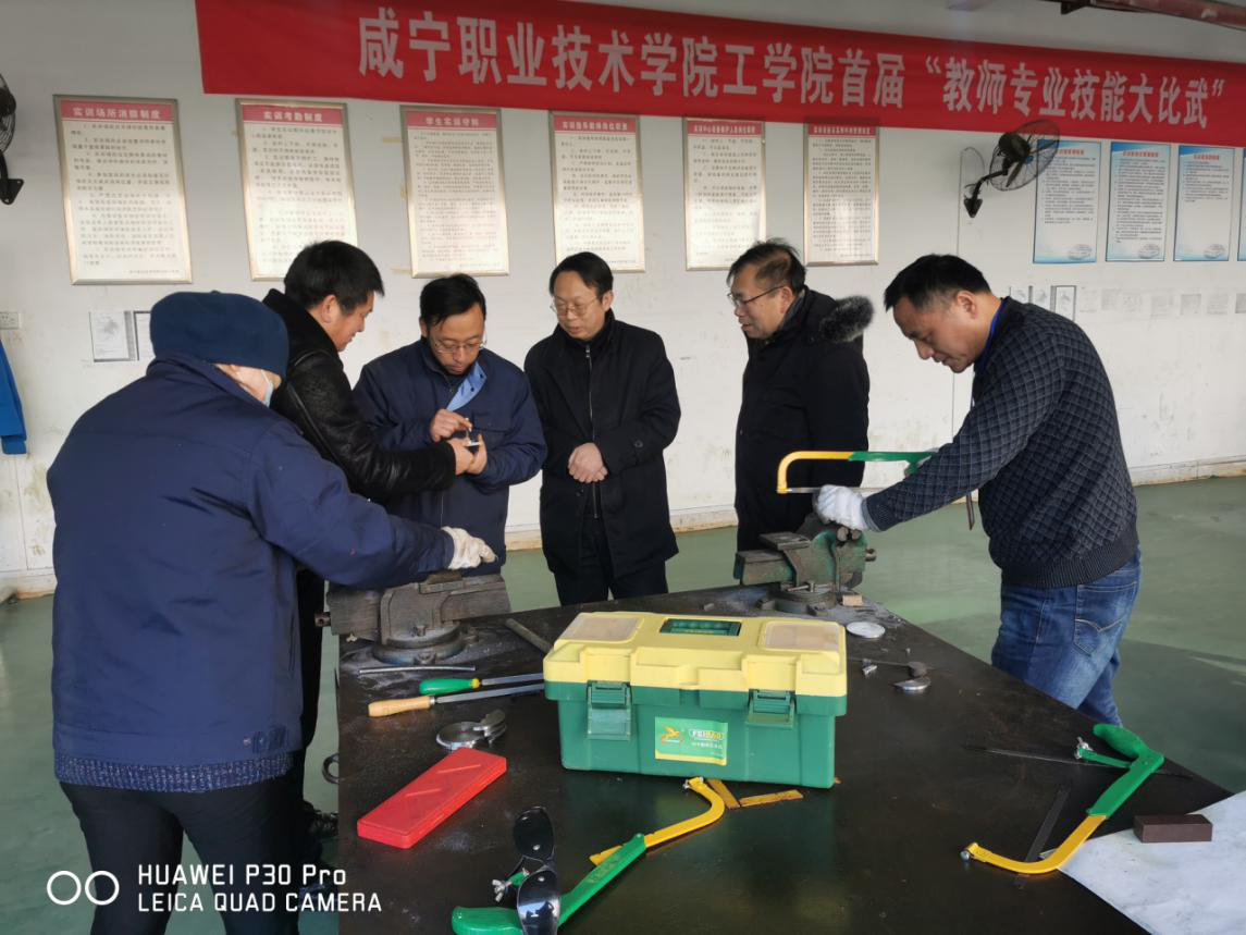 第一阶段活动开始后,校领导胡绍山亲临现场指导,教务处长吴涛也到现场观摩,胡新和院长每天亲临现场检查督导,领导班子成员也参与到现场开展工作。连续的低温天气,挡不住老师们参与技能比武的热情,在伟德国际victor1946操作车间中,老师们认真仔细的开展工作,按照各自任务分配,进行钳工、普车、数车、台架设计等操作。车间现场气氛热烈,老师们工作井然有序,操作规范、加工过程精益求精,力求完美,展现了伟德国际victor1946老师们良好的专业素养。部分辅导员老师也积极的加入到了比武的队伍中。