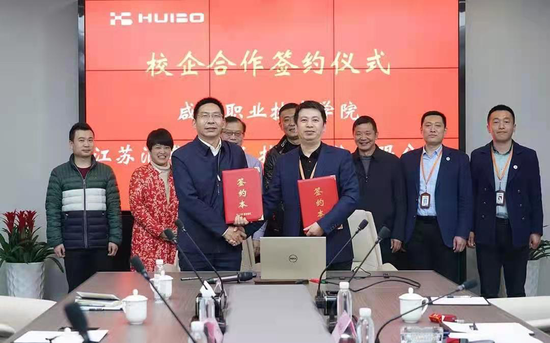 3月7日,前往江苏汇博机器人技术股份有限公司进行实地考察交流,在副总裁崔晓辉的陪同下参观了汇博研发生产车间,双方进行了深度合作交谈,与总裁王建华共同签订了《校企深度合作框架协议》。双方就创新团队建设、1+X证书标准制订协作、科技团队培育、招硕引博工作等达成了一致意见。