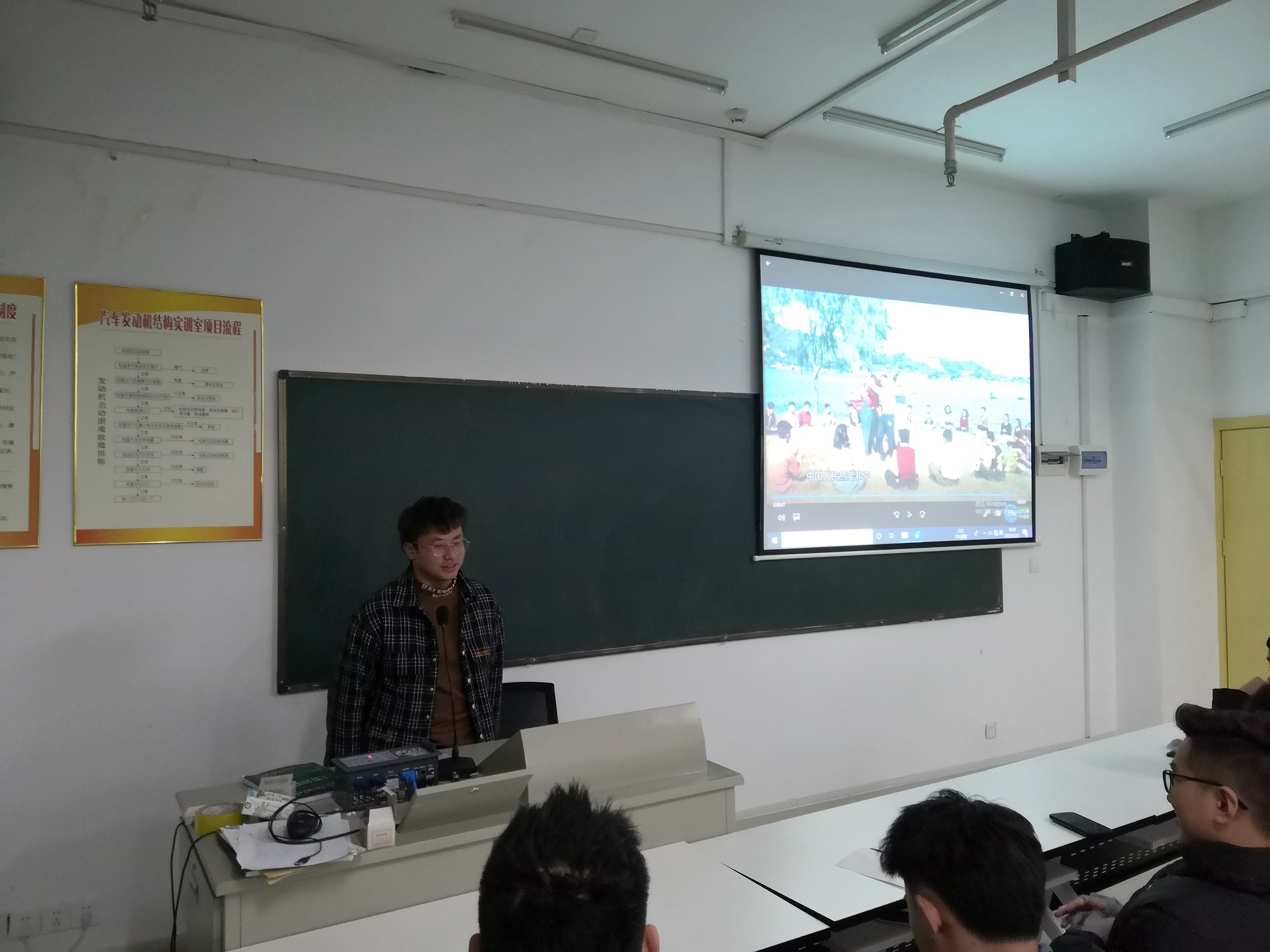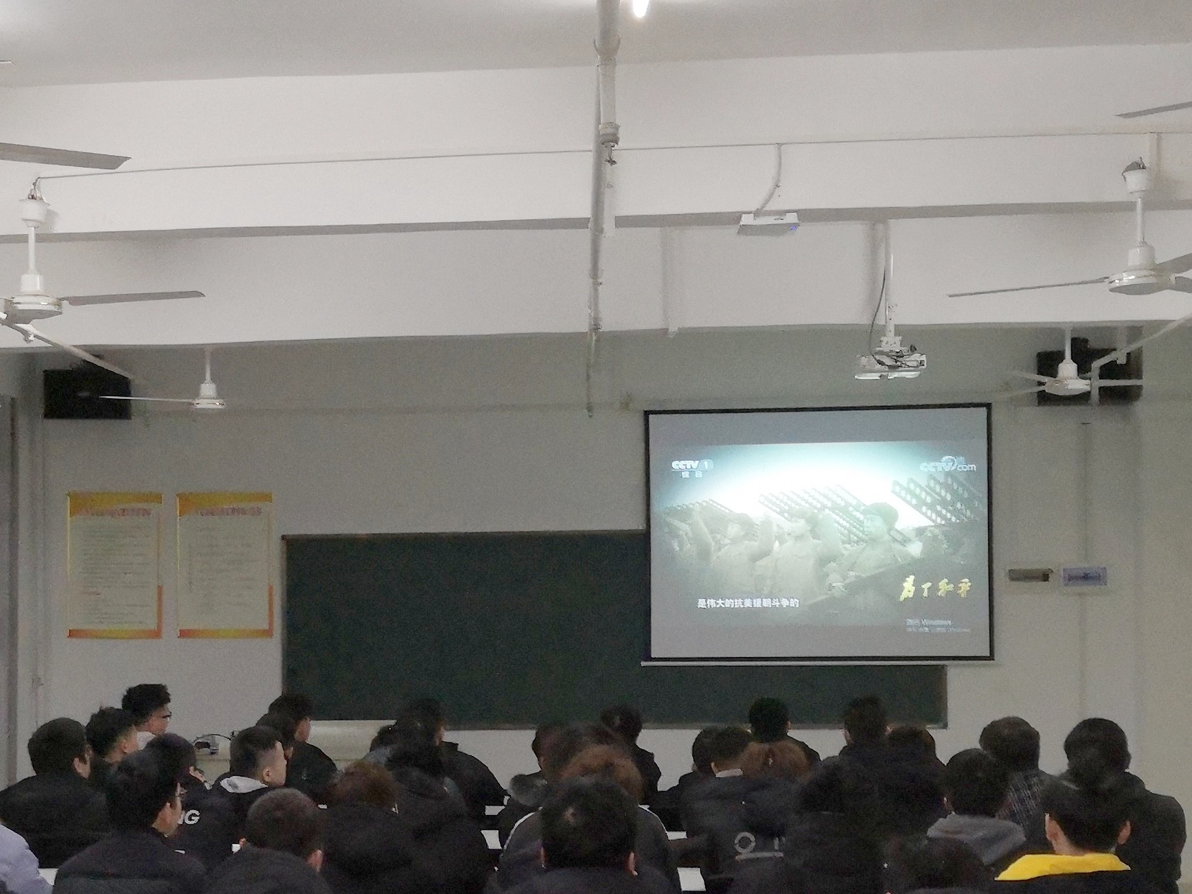 为弘扬伟大抗美援朝精神,加强新时代爱国主义教育,12月21日,伟德国际victor1946组织2020级汽车检测与维修技术专业学生在理工楼201教室集体观看电视纪录片《为了和平》。