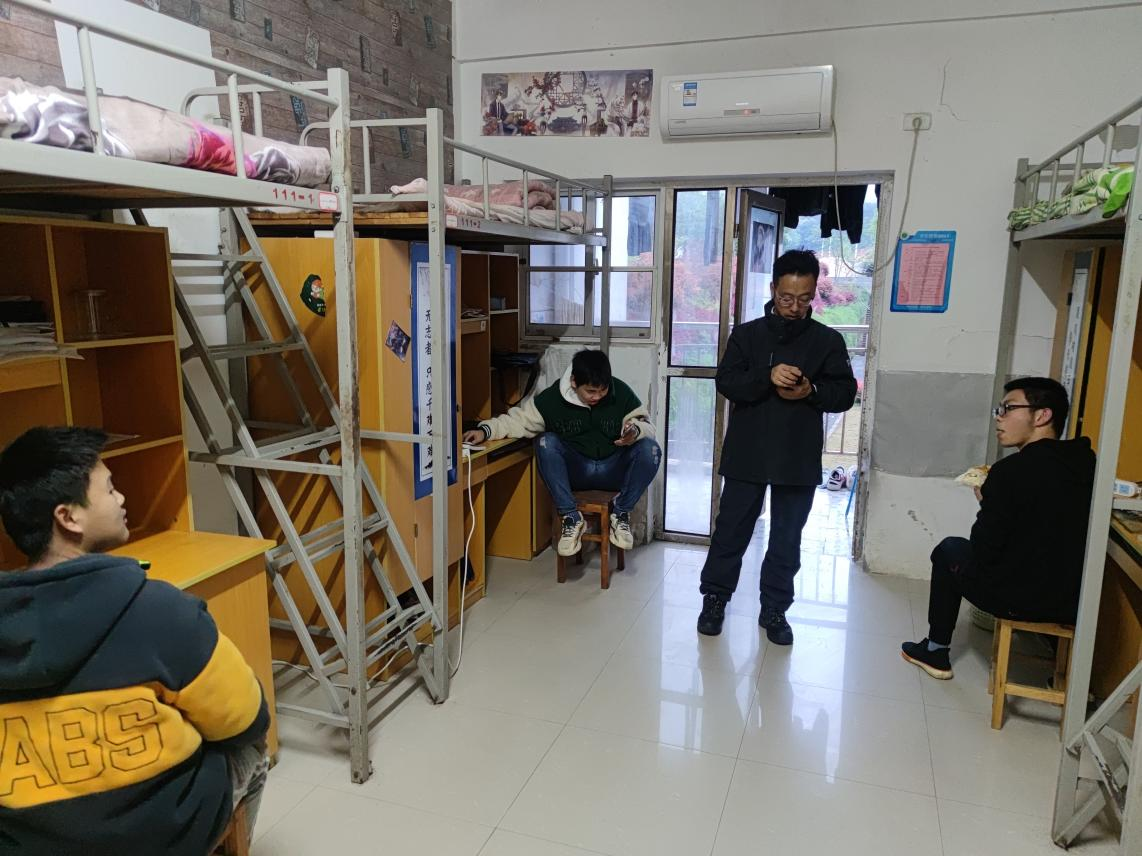 图1 党委委员、总会计师胡绍山下寝室与学生交流
