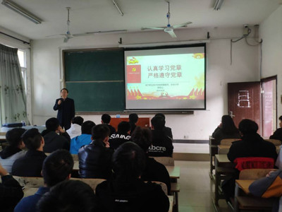 11月18日下午,在文华楼B栋401教室,学校党委委员、总会计师胡绍山同志以《认真学习党章 , 严格遵守党章》为题为伟德国际victor1946全体学生干部和入党积极分子讲了一堂精彩生动的党课。