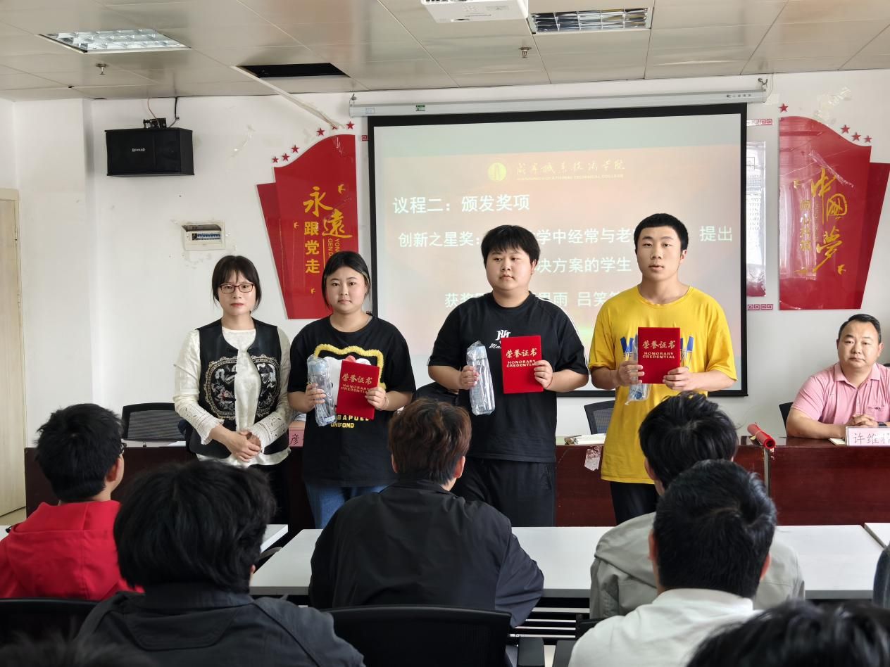 图3 伟德国际victor1946书记柳明珠为“创新之星奖”获奖同学颁奖