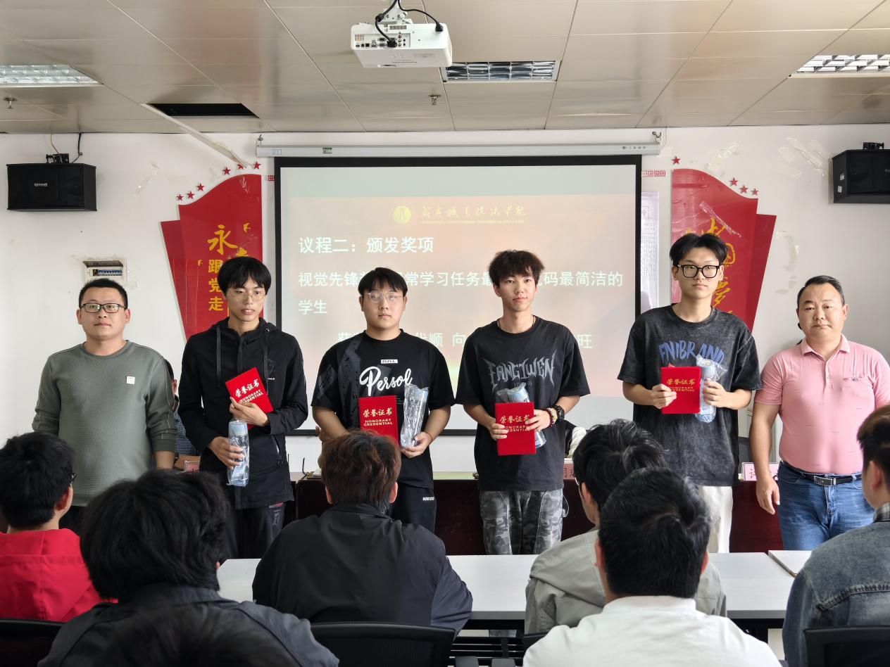 图2 伟德国际victor1946副书记许维林、海之晨工程师辛绪彬为“视觉先锋奖”获奖同学颁奖