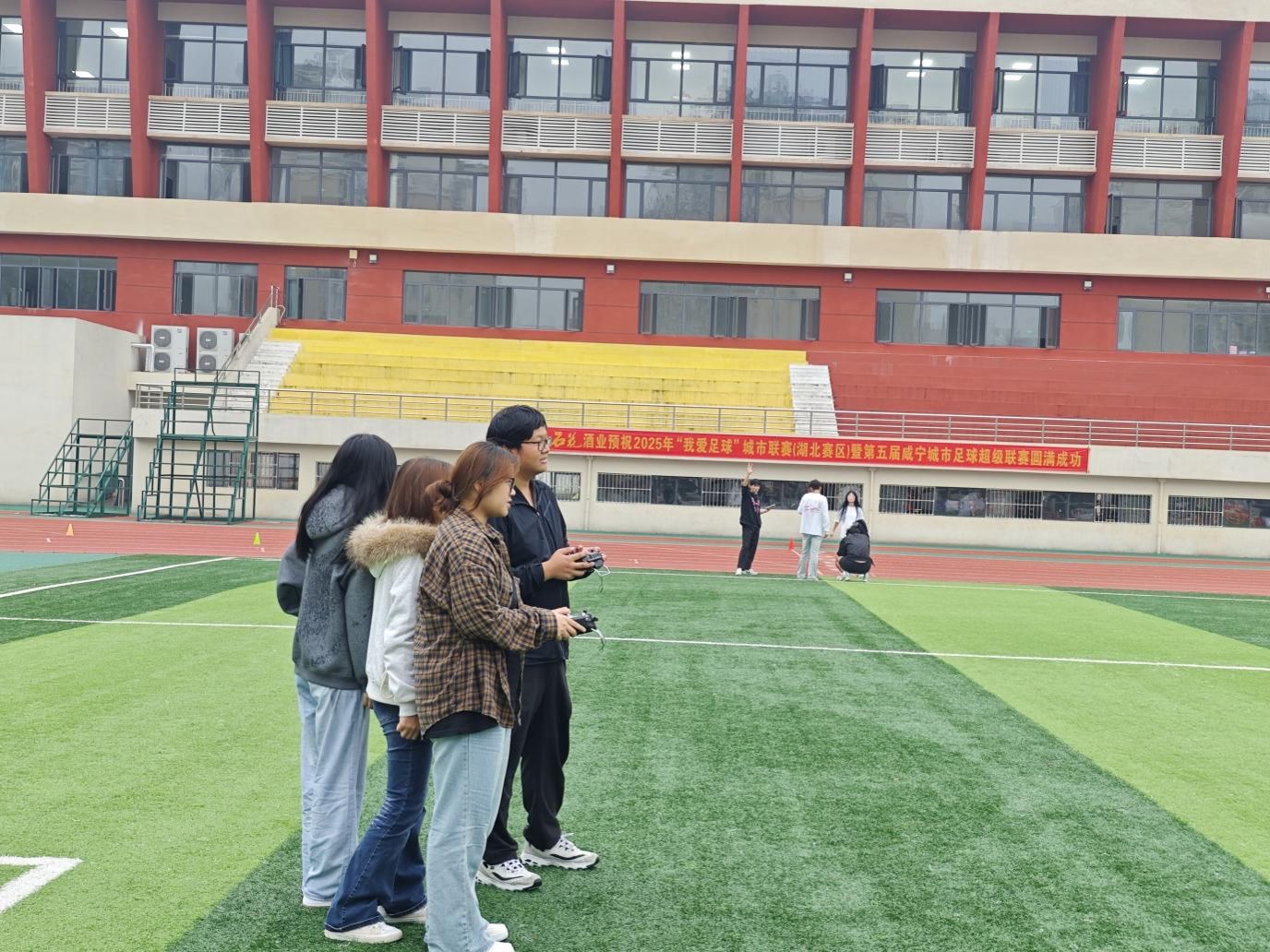 第二站,实习队伍来到了学校足球场,开启实践操作篇章。湖北宇一低空科技有限公司技术团队带来了满满的 “干货”—— 从无人机电池安装、遥控器校准等基础操作,到飞行姿态控制、应急降落等安全规范,技术导师通过 “理论讲解 + 示范操作” 的方式,将复杂的飞行原理转化为通俗易懂的实操技巧。“左手控制高度,右手调节方向,注意保持遥控器平稳……” 在导师的耐心指导下,学生们分组轮流上手,操控着无人机完成起飞、悬停、水平飞行等基础动作。当看到自己操控的无人机平稳盘旋在足球场上空时,学生们脸上洋溢着兴奋与自豪。带队教师表示:“实操环节让抽象的理论知识变得直观可感,有效提升了学生的专业兴趣和动手能力,为后续专业课程的教学奠定了良好基础。”