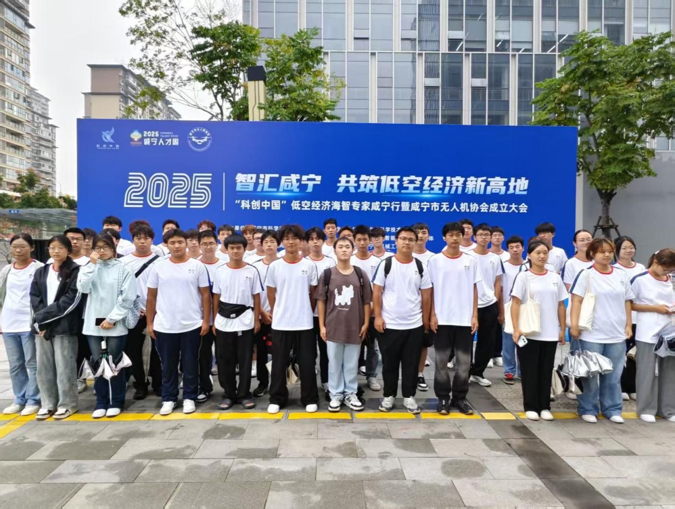 认知实习第一站是咸宁市无人机协会成立大会现场。当天,会场内陈列的多旋翼无人机、固定翼无人机等 10 余台消费级与行业级设备,瞬间点燃了学生的探索热情。在专家分享环节,咸宁市无人机协会负责人结合本地农业植保、电力巡检、应急救援等应用场景,深度解读无人机行业发展现状、政策支持方向及人才需求标准,强调 “精准操控 + 场景适配” 的核心能力要求。参会过程中,学生们围绕无人机机身材质、动力系统、飞控模块等关键部件,与现场技术人员展开互动咨询,逐步构建起对无人机行业生态的立体认知。学生表示:“原来无人机不仅能航拍,还能在农业、电力、应急等领域发挥大作用,让我对专业的就业前景更有信心了!”