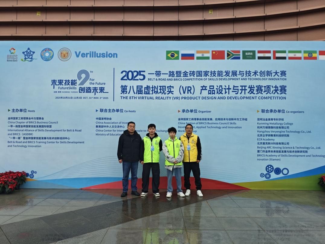 近日,第八届“一带一路暨金砖国家技能发展与技术创新大赛”虚拟现实(VR)产品设计与开发赛项全国总决赛在昆明冶金高等专科学校成功落幕。在我校伟德国际victor1946杨彦伟、钟昌清老师的悉心指导下,机械设计与制造专业学生李佛林、梅豪杰荣获全国三等奖。