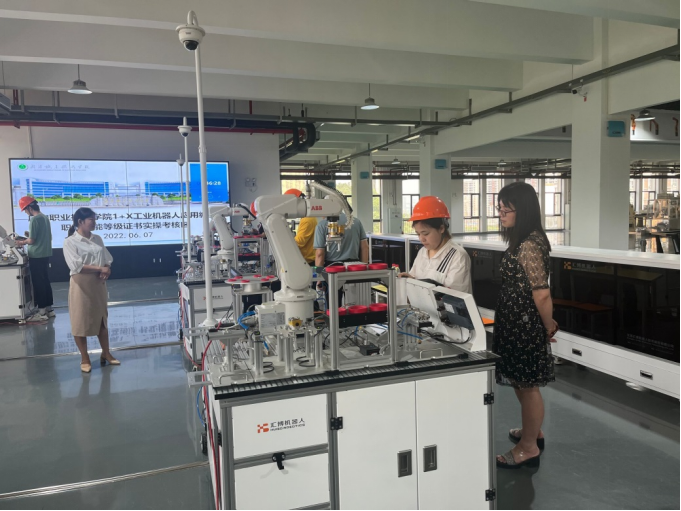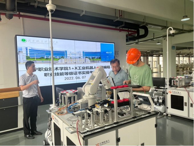 为认真贯彻落实国务院《国家职业教育改革实施方案》及教育部《关于在院校实施“学历证书+若干职业技能等级证书”制度试点方案》的文件精神,深化职业教育综合改革,结合学校“八个一”工程要求,提高伟德国际victor1946人才培养质量,我院于6月7日至8日,进行了2022年第一次“1+X”工业机器人应用编程职业技能等级(初级)考核,胡新和院长、柳明珠书记到现场督考。