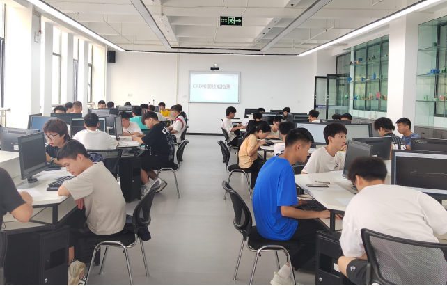 6月10日上午,在虚拟仿真中心601机房举行《机械制图》课程的AutoCAD技能抽测考核,从伟德国际victor194621级随机抽取的42名学生参加本次考核,考核要求在120分钟时间内完成规定的基本图形的绘制,重在考察学生对AutoCAD软件的熟练应用程度。考核过程中,同学们态度认真,神情专注,技法娴熟,大部分选手都能完成考核任务,且图形效果好。