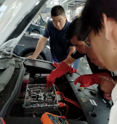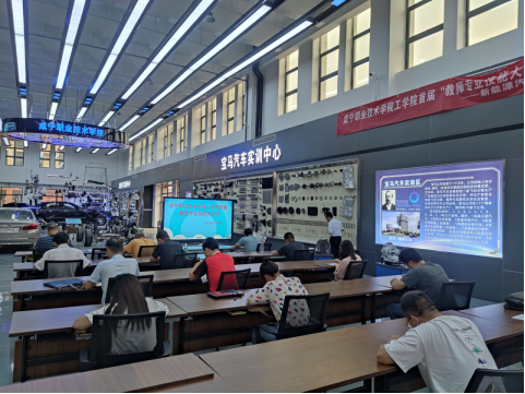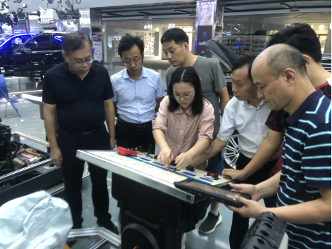 本次项目培训在新落成的新产业实训基地新能源汽车实训中心进行,由北方汽修提供技术支持,北方汽修总工程师蔡海红主持培训。培训内容包括丰田、比亚迪混动教学系统使用,电池电机考试系统使用,奔驰、宝马、奥迪整车教学系统使用,比亚迪秦EV、E5,吉利帝豪EV450整车实训系统使用等多项培训内容。通过培训,参训老师们深入了解了目前国内具有代表性的先进汽车技术和动力电池电机技术,同时进一步熟练了新引入的各种实训教学系统的使用。