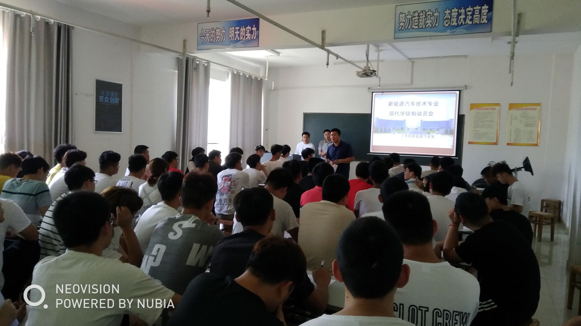 5月28日下午三点,新能源汽车系在理工楼203举行新能源汽车技术专业现代学徒制动员大会,2018级新能源汽车技术专业全体学生和部分专业教师参加。