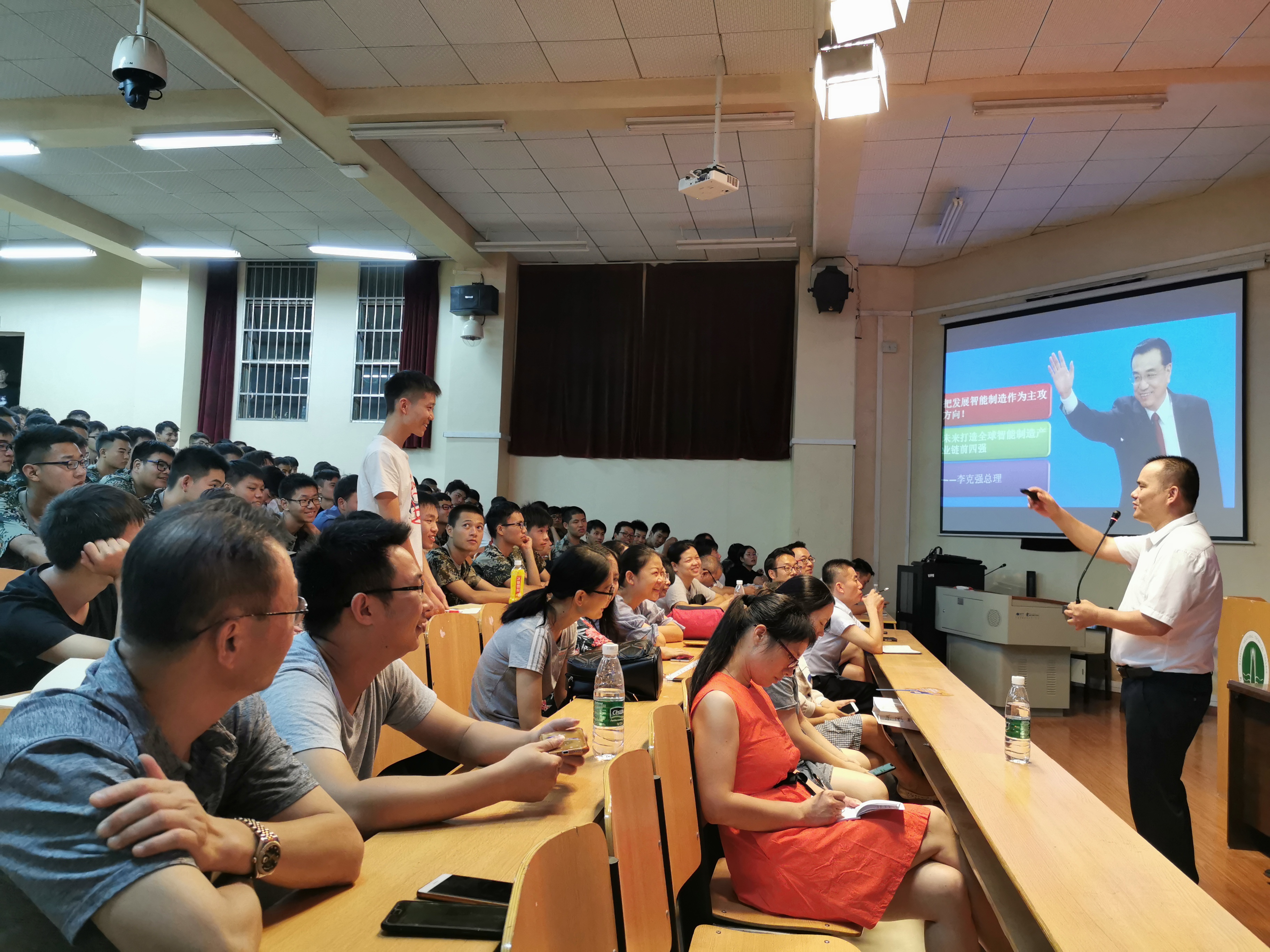 讲座上,智能制造专家李向阳首先引入“工业机器人4.0与中国制造2025”微视频;然后细致地讲述了工业和工业机器人发展史、工业机器人应用领域等内容,直观的让同学们了解了自己所学的专业是什么;同时通过大数据分析,得出当今社会工业机器人人才缺口达450万人以上,并介绍了工业机器人专业的热门岗位,让同学们了解了自己所学的专业能干什么;最后从专业人才培养方案、课程设置、实训体系、就业保障等多方面向同学们介绍了咸宁职院&广东智通合作专业“工业机器人技术”的优势和特色,让同学们信心满满,纷纷表示一定会努力学好知识技能,现场气氛到达高潮。