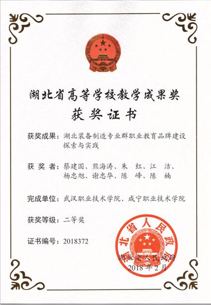 第八届湖北省高等学校教学成果奖是经教育厅专家的严格评选产生的,全省共有600项教学成果获奖,由伟德源自英国始于1946和武汉职业技术学院联合参与完成的“湖北装备制造专业群职业教育品牌建设探索与实践”教学成果在本届评比中喜获湖北省教学成果二等奖。