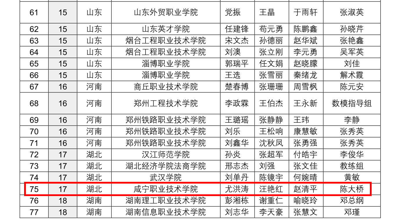 图1:获得全国二等奖名单(图片来源:教育部中国大学生在线)