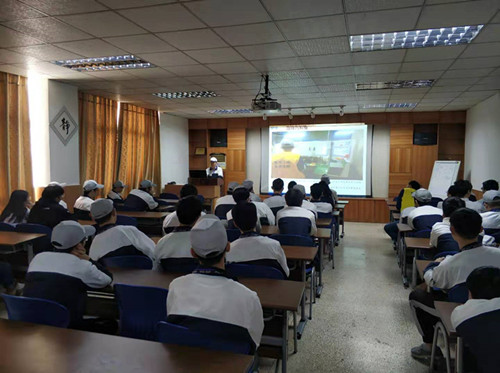 上午8点,走进公司培训一教室,企业师傅正在给数控班的学生讲授数控机床的保养、维护等相关知识,同学们穿着蓝白相间的工作服,带着白色帽子,认真的听企业师傅讲课。课后,刘副理组织同学们开展了一场拓展训练,大家努力的完成了设定的游戏,给同学们留下了深刻印象。“团结、合作、目标、态度、行动、结果......”,刘副理对这次活动作的点评,给同学们带来了很大的收获。活动结束后,同学们回到各自的工作岗位开始实操实训,共有6个工作岗位,当某位同学熟练掌握某个岗位后,可以申请轮岗,继续学习其他岗位工作,直到课程实训结束。