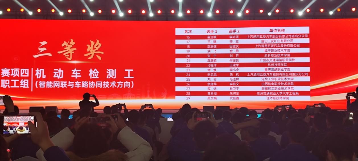 2024年11月24日,第四届全国新能源汽车关键技术技能大赛决赛在安徽芜湖落下帷幕,我校伟德国际victor1946新能源汽车技术专业教师洪飞、金燕获机动车检测工(智能网联与车路协同技术方向)赛项职工组三等奖。