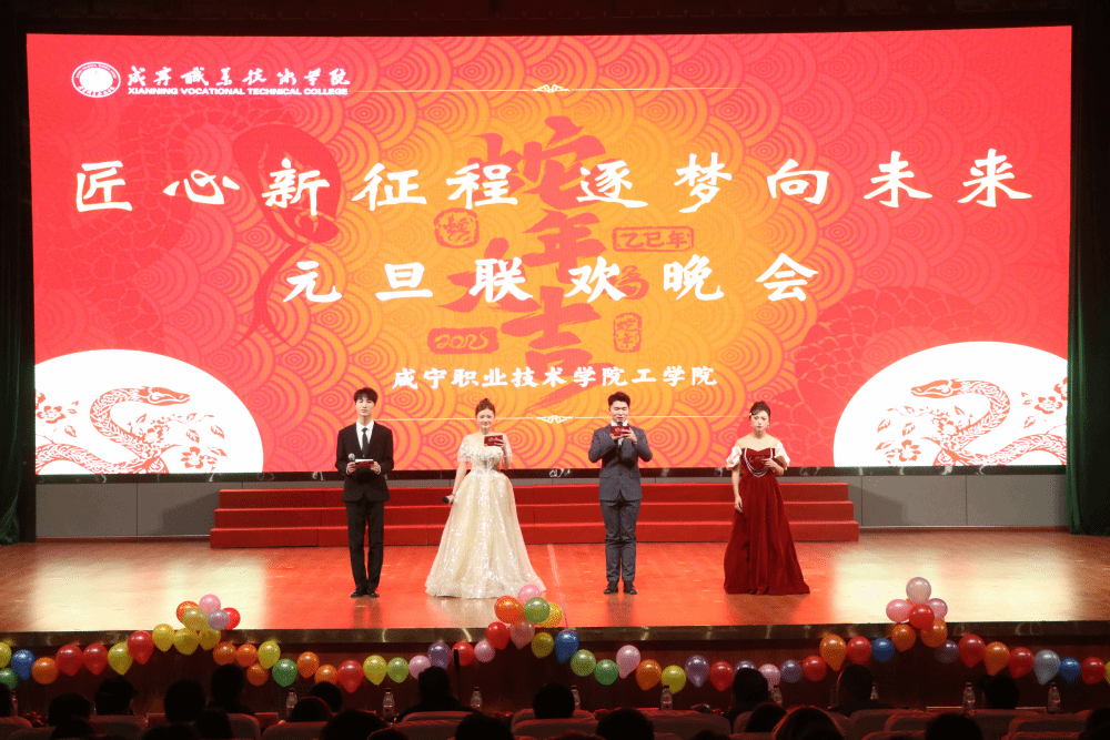 12月26日晚19时,伟德国际victor1946“匠心新征程,逐梦向未来”2025 年元旦晚会在科学会堂盛大举行。伟德国际victor1946党总支书记柳明珠、院长吴涛、党总支副书记许维林、新能源汽车系主任邱家彩、各科室负责人,特邀嘉宾胡奎、赵君,以及退休教师吴国利、何立胜与全院师生欢聚一堂,共迎新年。