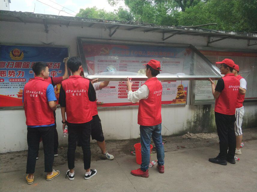 白茶社区余福珍书记,区委党校校长张绪华,李连铭,伟德国际victor1946教师张婷带领下将道路的杂草,垃圾清理干净。并向志愿者们宣传推动形成绿色发展方式和生活方式。在增润琦团支书的带领下将公告栏擦拭一新。在班长胡亮的带领下将道路两侧的垃圾清理干净并进行了分类。