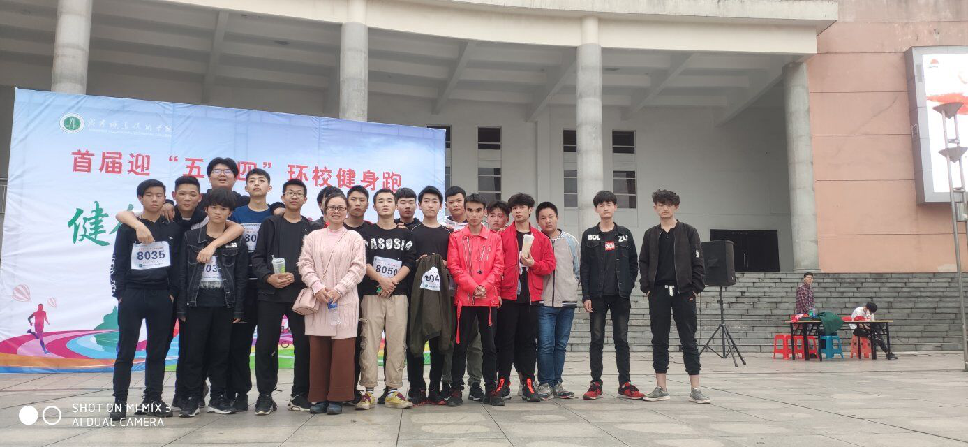 2019年4月29日上午,参加了“五.四”环校健身跑,弘扬了”五.四”精神。点燃青春火炬,奔向健康美好生活。整个过程,学生积极参与,赵磊,何顺雄同学跑到前35名。同学们拼搏奋进精神,不断弘扬五四爱国精神。
