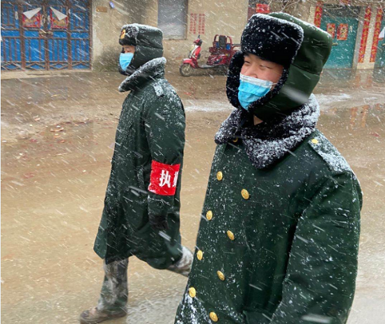 大年初五,村里要组建纠察队,刘庆伟毫不犹豫地向枣阳市鹿头镇简庄村村委提出了申请:" 我是一名退伍军人,也是新时代的大学生,我有义务站在防疫一线,用实际行动回报社会,为家乡的疫情防控做些实事。"刘庆伟的工作是和纠察队的队友们在街上巡逻,对出门不佩戴口罩、聚集扎堆、无事闲逛散步等防疫意识淡薄的人员进行教育劝返、遣散驱离。同时在巡查过程中加强宣传,向广大群众流动播放讲解病毒传播方式及疫情防护知识。就这样,早上7点出发,晚上7点才能到家,每天至少要走一二十公里。“这个孩子天天一大早就来了,也不知道累。”值守点的人这么说。