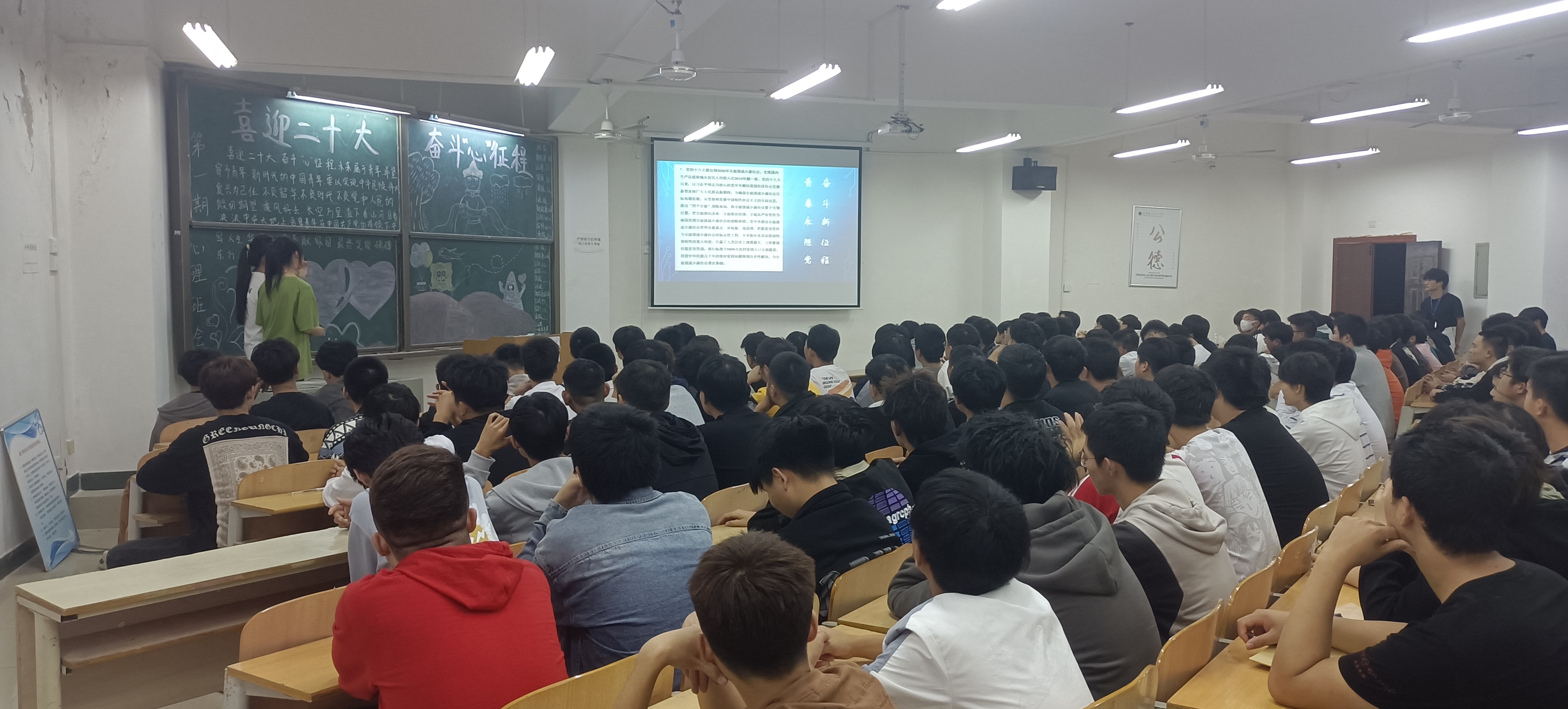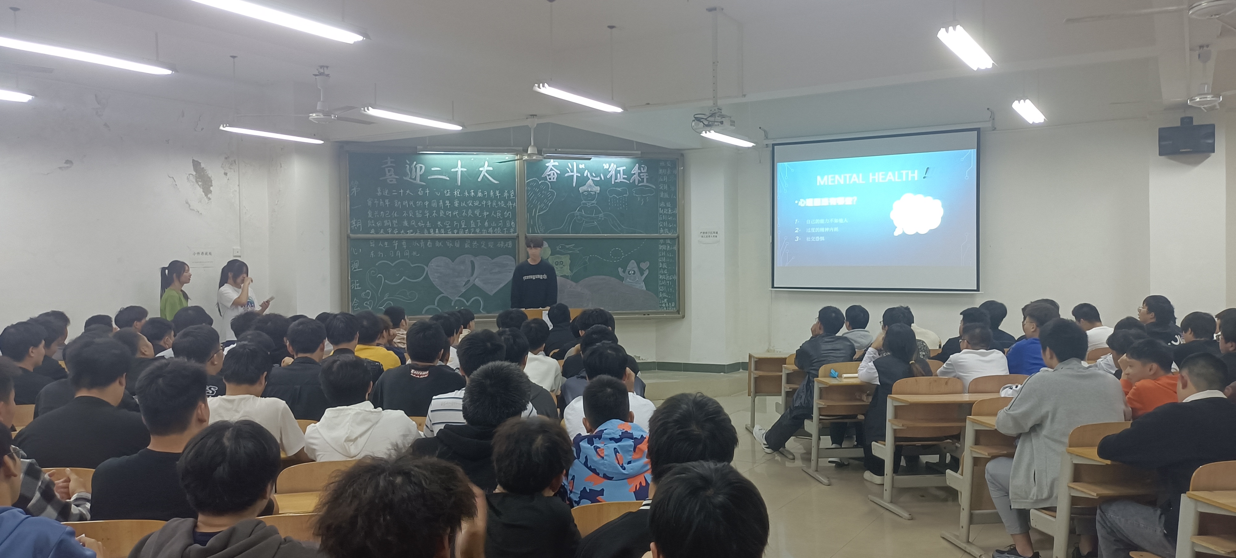 为庆祝党的二十大胜利召开,10月30日晚,伟德国际victor1946在教一楼开展了以党的二十大为主题的心理班会活动,2022级全体新生参加了活动。