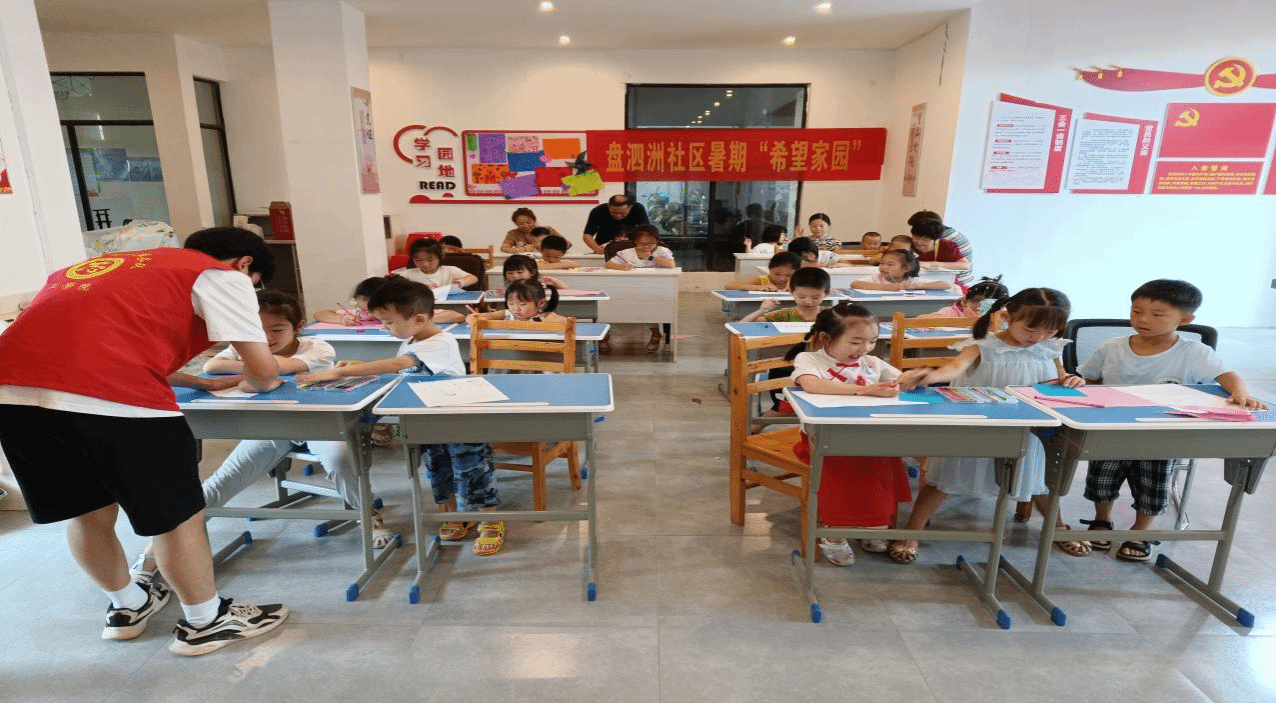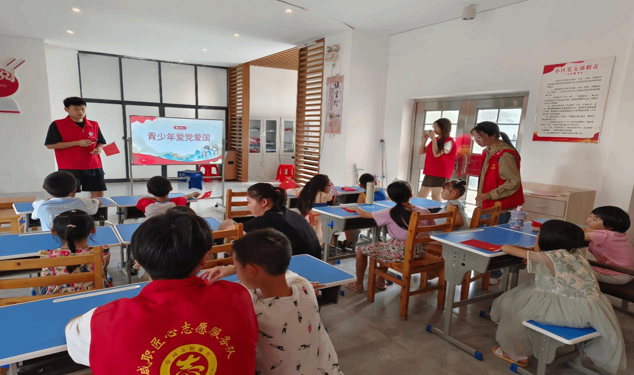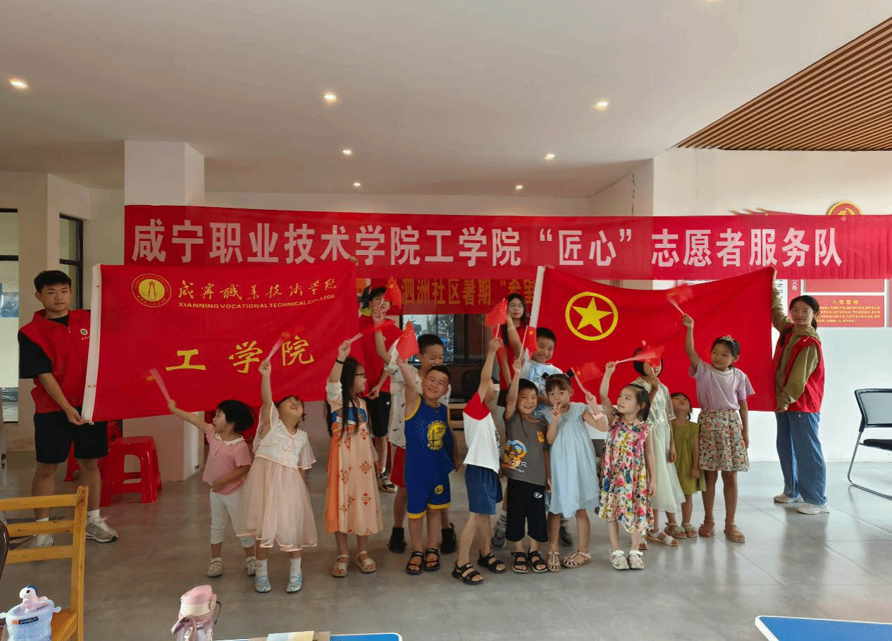 7月17日,为深入学习宣传贯彻习近平新时代中国特色社会主义思想和党的二十大精神,落实“强国复兴有我”主题宣传教育活动,伟德国际victor1946“匠心”志愿服务队志愿者们在咸宁市盘泗洲社区为“希望家园”孩子们带来了一堂别开生面的爱国主题教育启蒙课。