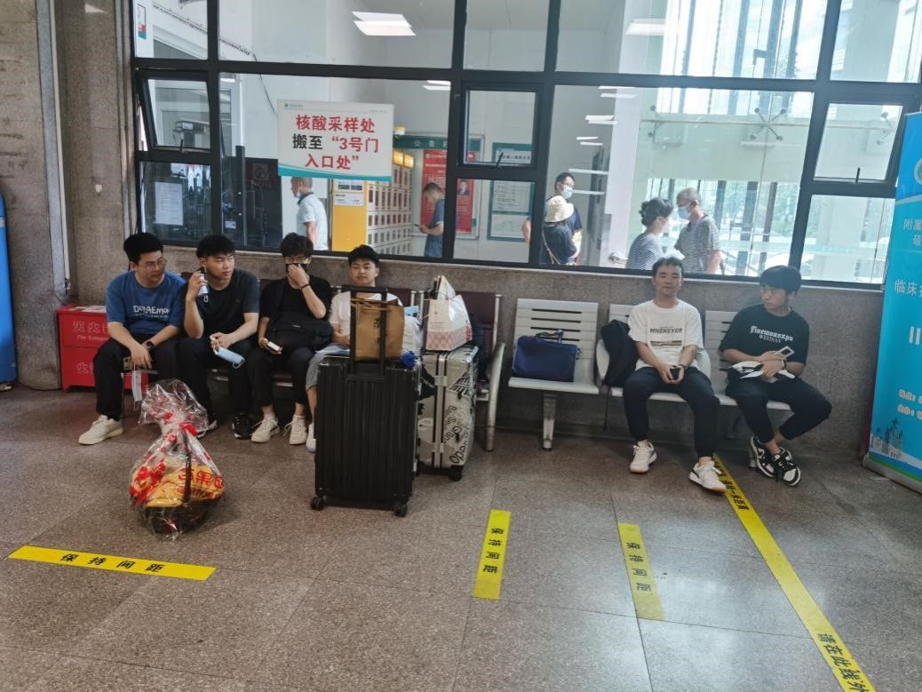 图2 同学们在医院大厅等待网上预订的向日葵