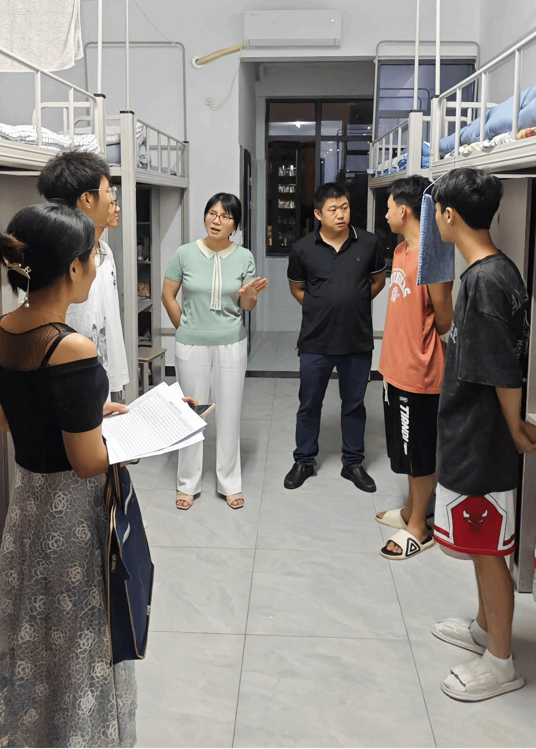 为进一步了解新生到校后的学习和生活状况,引导新生更快适应大学生活,切实解决新生遇到的实际问题,9月12日晚,校党委委员、总会计师胡绍山在伟德国际victor1946党总支书记柳明珠、院长吴涛的陪同下,走进关于2023级新生宿舍走访慰问,为新生送去关心和温暖。