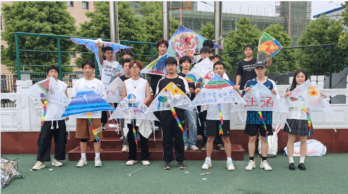 此次DIY风筝活动主要分为风筝绘画、作品展示和放飞风筝三个环节。参与活动的学生以小组为单位,充分发挥个人的想象力和创造力,在风筝上手绘自己喜欢的图案,有的在风筝上画下愿望,有的在风筝上书写烦恼……画完后,同学们将创作好的风筝在天空中放飞。各式各样的风筝扶摇直上,在空中你追我赶,时而飘摇回旋,时而直上蓝天,同学们卸去学习上的压力与烦恼,尽情享受着放飞梦想的快乐,操场上一片欢声笑语,热闹非凡。