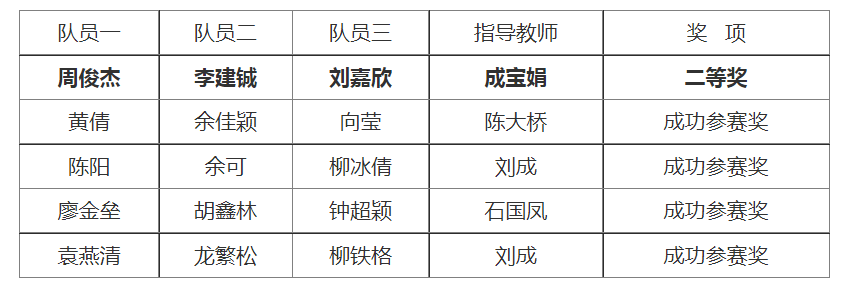 9月份开学后,备赛同学继续开展了第三阶段培训。通过层层选拔,最终选出6队学生参赛。各队伍积极参赛,克服困难、敢于拼搏、勇于创新、挑战自我,最终获得如下奖项: