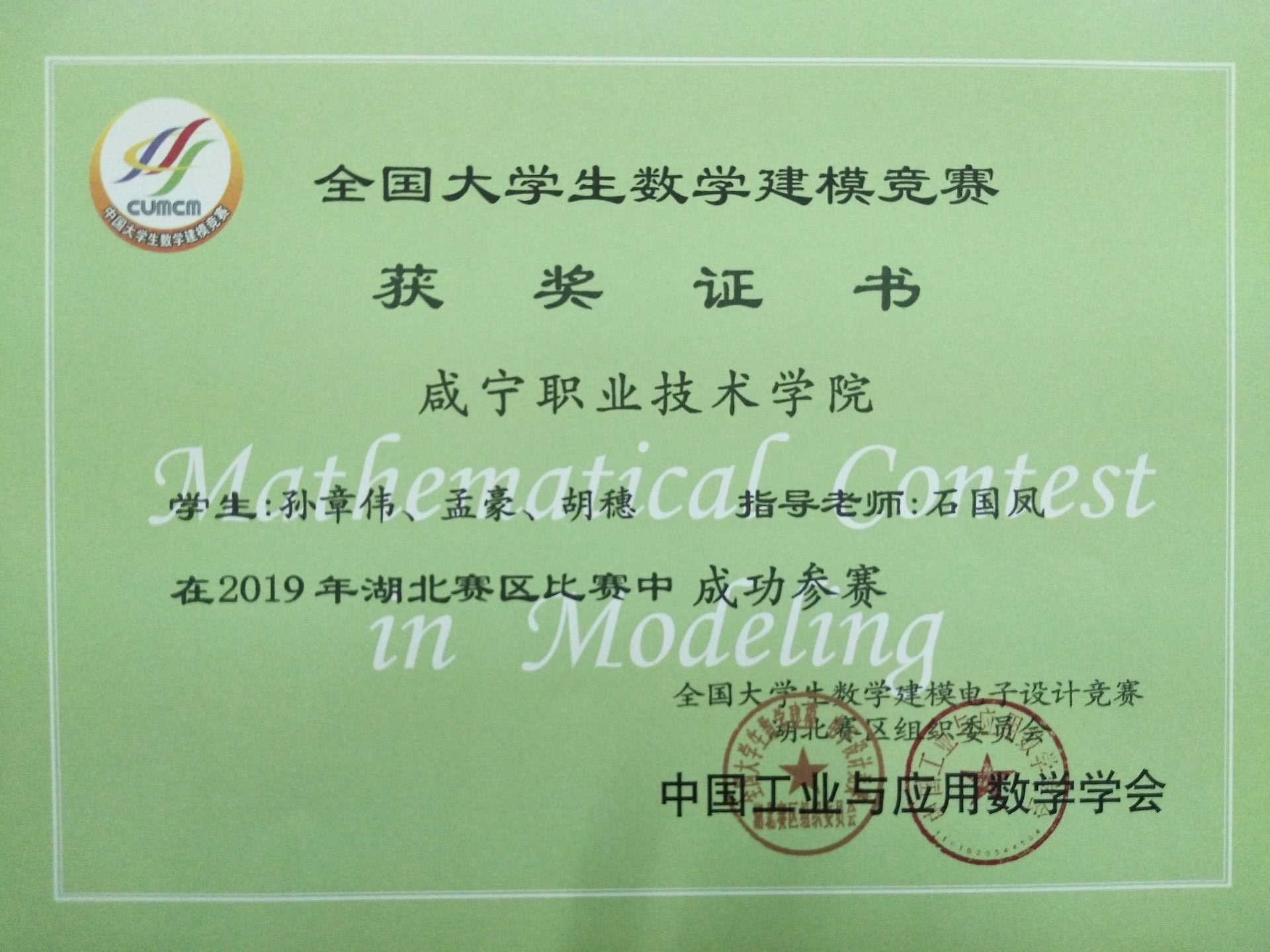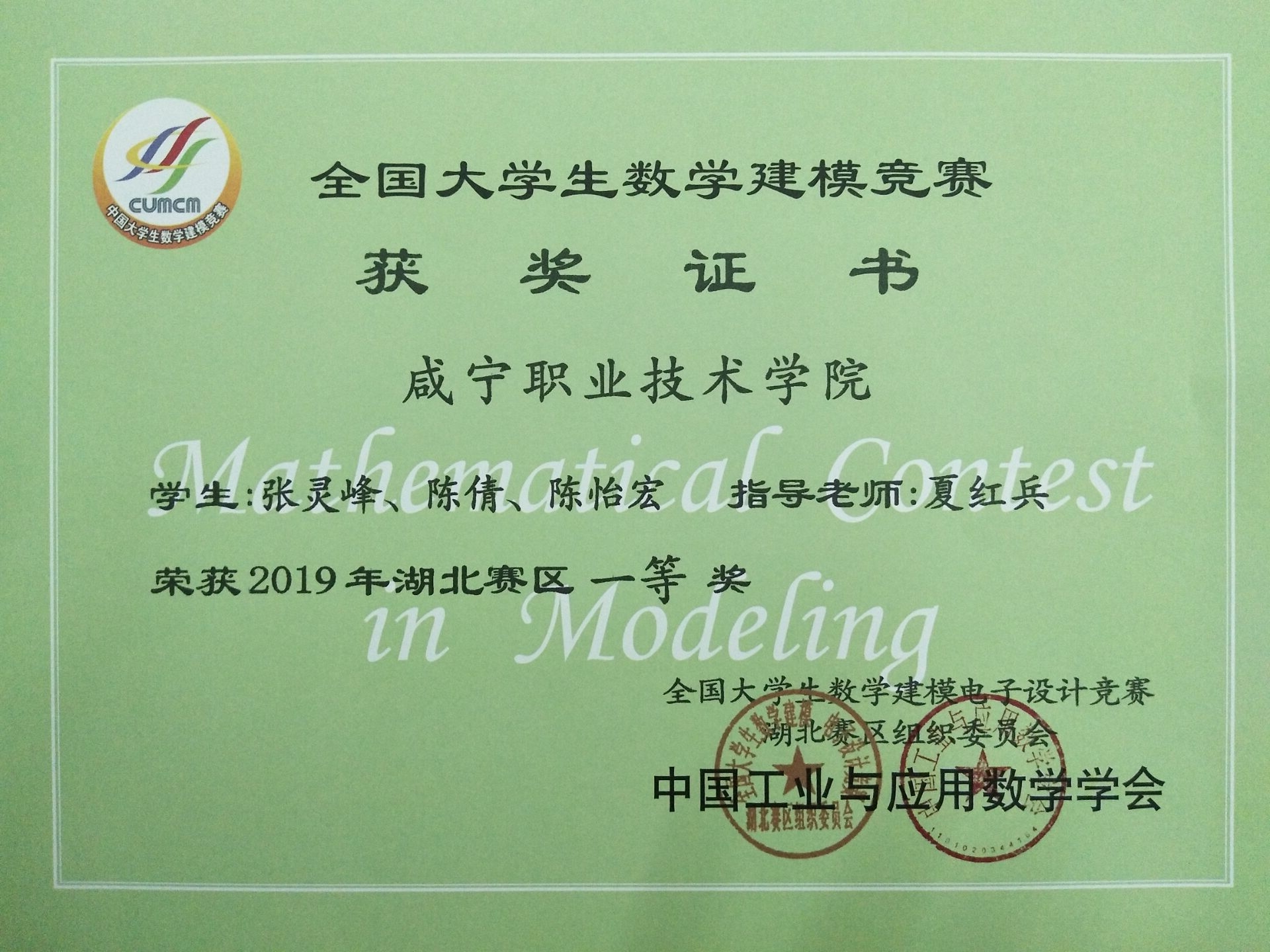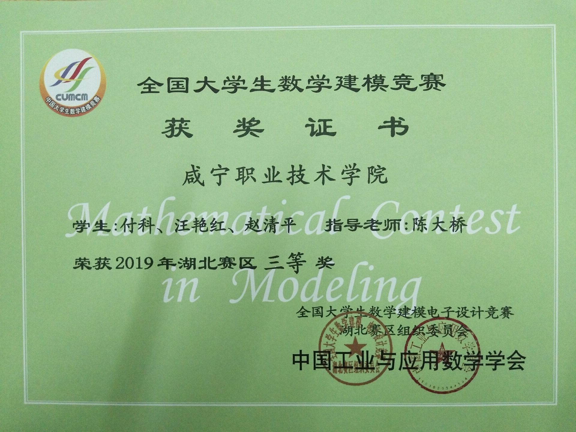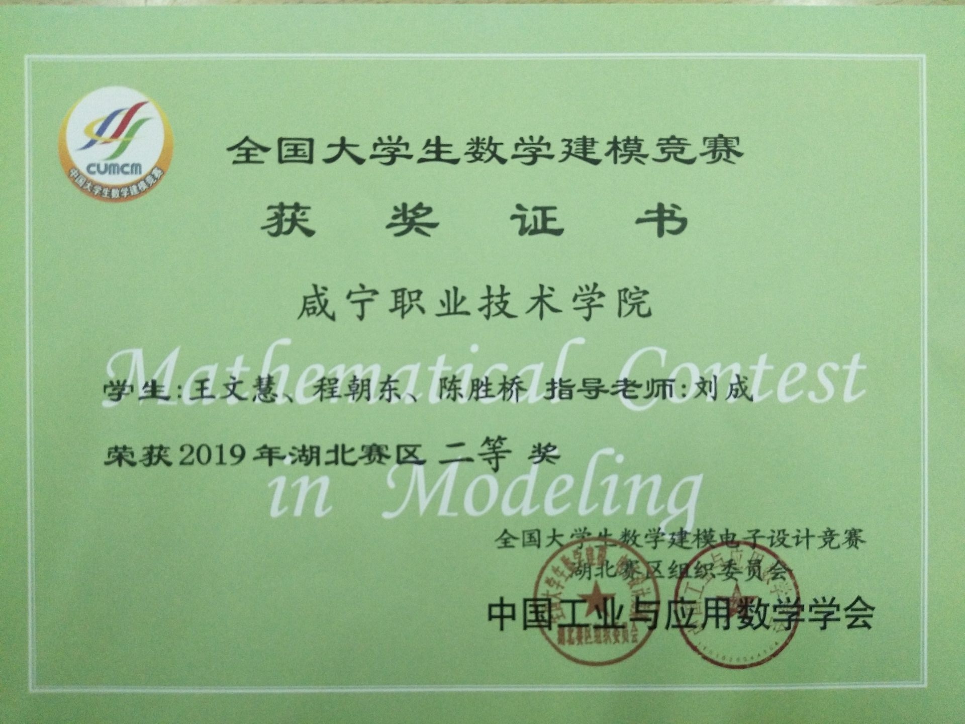 近日,2019年全国大学生数学建模竞赛成绩揭晓,我校喜获湖北赛区一等奖、二等奖、三等奖、成功参赛奖各一个。