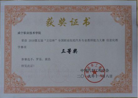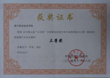 喜报:新能源、新突破——伟德国际victor1946教师罗易、黄浩在全国 汽车专业教师能力大赛中荣获三等奖