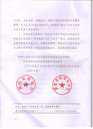 关于下达2019年中央引导地方科技发展资金预算的通知